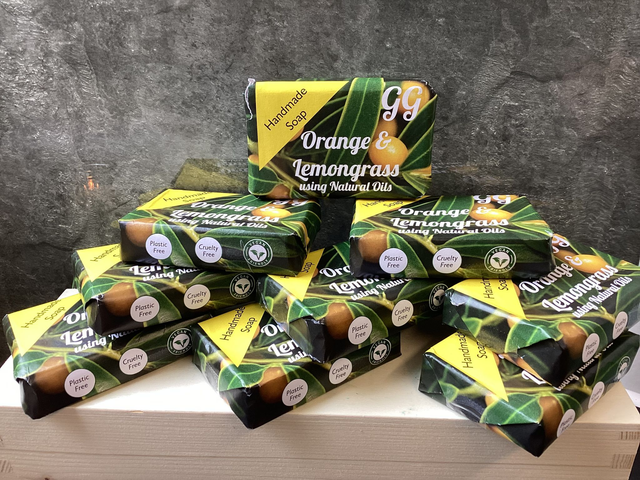 Handmade - Natural Sweet Orange& Lemongrass white square bar soap with